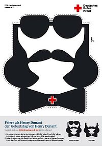 Wir feiern den Weltrotkreuztag 2019 als Henry Dunant! Wie das geht? Ganz einfach: Maske ausschneiden, aufsetzen, Foto knipsen!