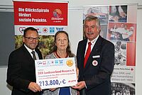 Wiesbaden - Anlässlich der symbolischen Scheckübergabe am 2. Oktober bei der DRK-Landesgeschäftsstelle in Wiesbaden freut sich der DRK-Landesverband Hessen e.V. über Fördermittel der Lotterie…